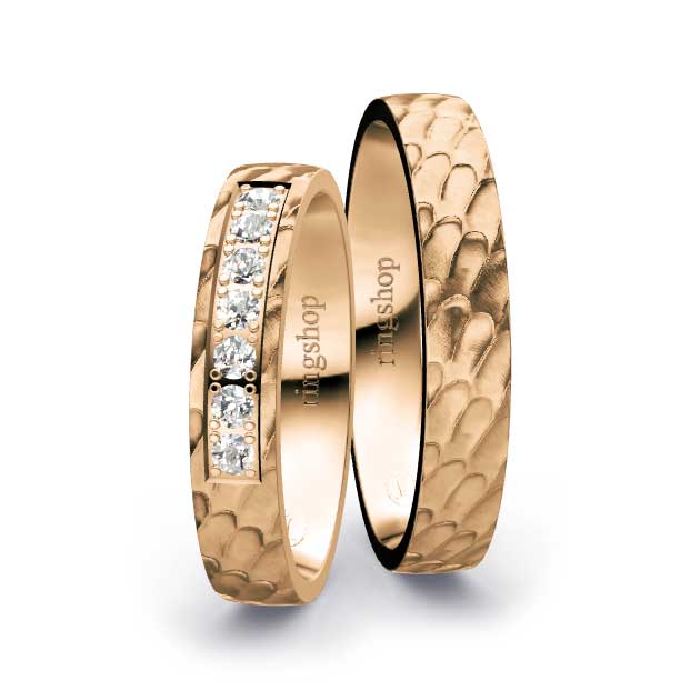 Roségold erfreut sich zunehmender Beliebtheit bei Paaren, die eine romantische und zugleich moderne Alternative zu klassischem Gelbgold oder Weißgold suchen. Der zarte Roséton entsteht durch einen erhöhten Kupferanteil und verleiht dem Schmuckstück eine warme, elegante Note – dezent und doch unverwechselbar.