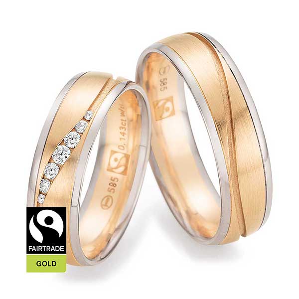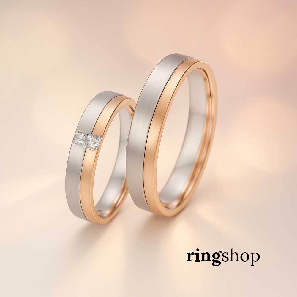 Zweifärbige Eheringe vereinen zwei Edelmetalle in einem stilvollen Design – und symbolisieren so die Verbindung zweier Persönlichkeiten zu einer einzigartigen Einheit. Ob sanftes Roségold mit kühlem Weißgold, kräftiges Gelbgold mit edlem Platin oder trendiges Palladium mit feinem Champagnegold – diese Ringe bieten ein Spiel aus Kontrast und Harmonie, das nie an Wirkung verliert.