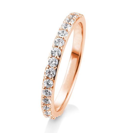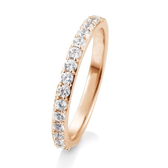 Ob klassisch-elegant mit einem einfachen Halbkreis aus Brillanten, vintage-inspiriert mit feinen Milgrain-Kanten und Gravurornamenten oder zweifarbig mit Kombinationen aus Gelb- und Weißgold – die Designmöglichkeiten sind vielfältig. Übliche Bandbreiten liegen zwischen 3 und 5 mm, wobei auch breitere Modelle bis zu 7 mm verfügbar sind, die dank präziser Anpassung ebenfalls komfortabel sitzen.