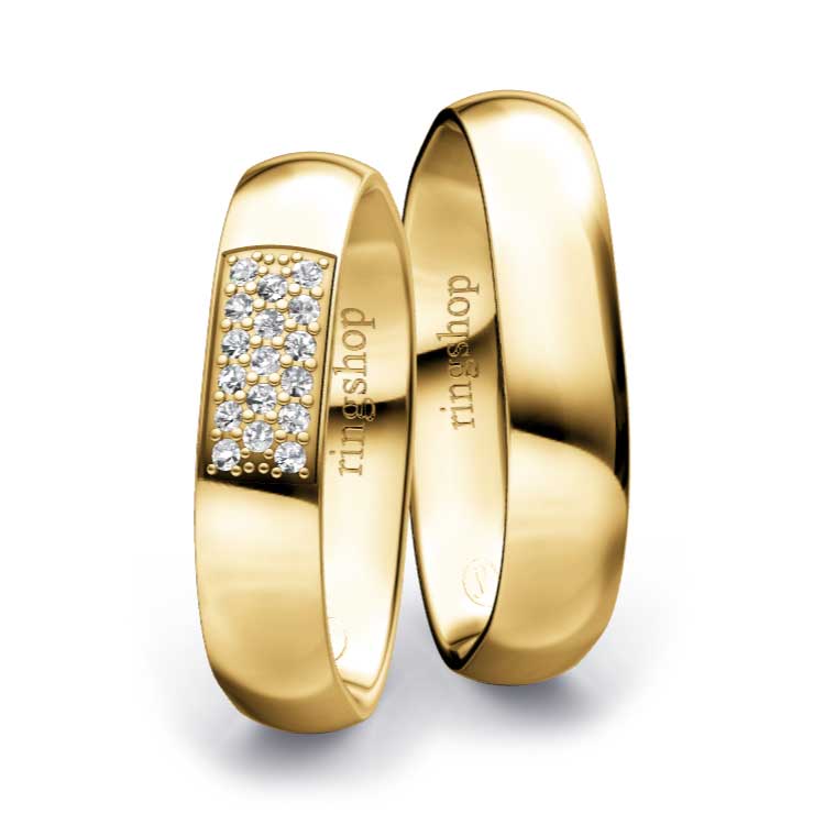 Gelbgold: Die “klassische”, elegante und zeitlose Goldfarbe mit Feingehalt 333/-, 375/-, 585/- und 750/- ist eine dem Feingold sehr ähnelnde gelbe Goldlegierung, die vorwiegend mit Silber und Kupfer legiert ist. Mit einem Feingehalt von 585/- (14 Karat) und 750/- (18 Karat) spricht man von “Echtschmuck”.