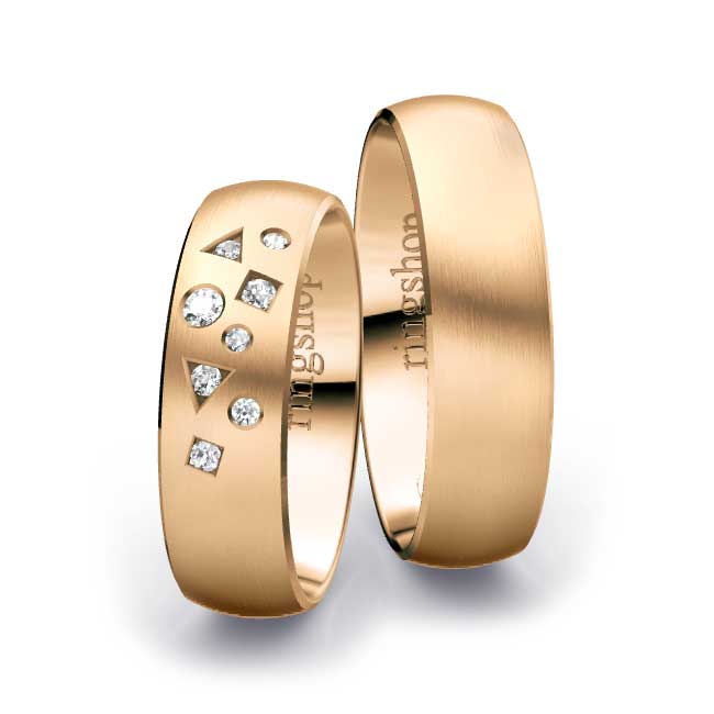 Rotgold: Es handelt sich um eine Legierung aus Feingold, Kupfer und Silber mit Goldanteilen zwischen 333/- und 750/-. Der etwas größere Kupferanteil sorgt für die namensgebende „rote“ Färbung und Härte des Materials. Der elegante und gleichermaßen zeitlose Farbton ist Kupfer ähnlich.