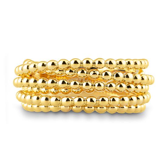 Gelbgold: Die «klassische», elegante und zeitlose Goldfarbe mit Feingehalt 333/-, 375/-, 585/- und 750/- ist eine dem Feingold sehr ähnelnde gelbe Goldlegierung, die vorwiegend mit Silber und Kupfer legiert ist. Mit einem Feingehalt von 585/- (14 Karat) und 750/- (18 Karat) spricht man von «Echtschmuck».