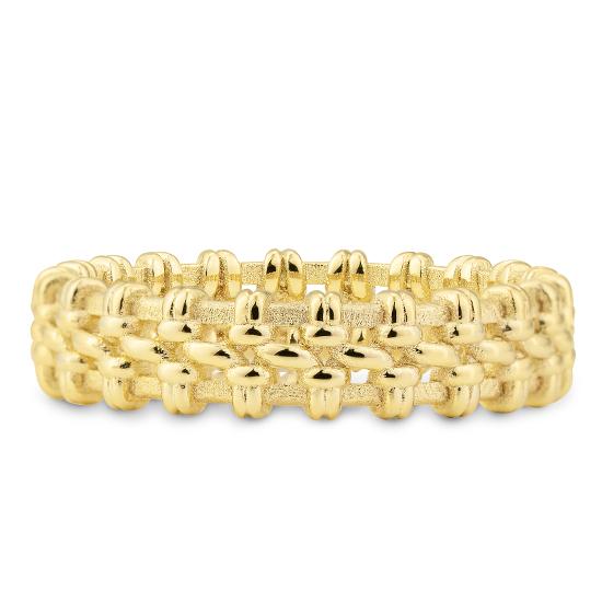 Gelbgold: Die «klassische», elegante und zeitlose Goldfarbe mit Feingehalt 333/-, 375/-, 585/- und 750/- ist eine dem Feingold sehr ähnelnde gelbe Goldlegierung, die vorwiegend mit Silber und Kupfer legiert ist. Mit einem Feingehalt von 585/- (14 Karat) und 750/- (18 Karat) spricht man von «Echtschmuck».