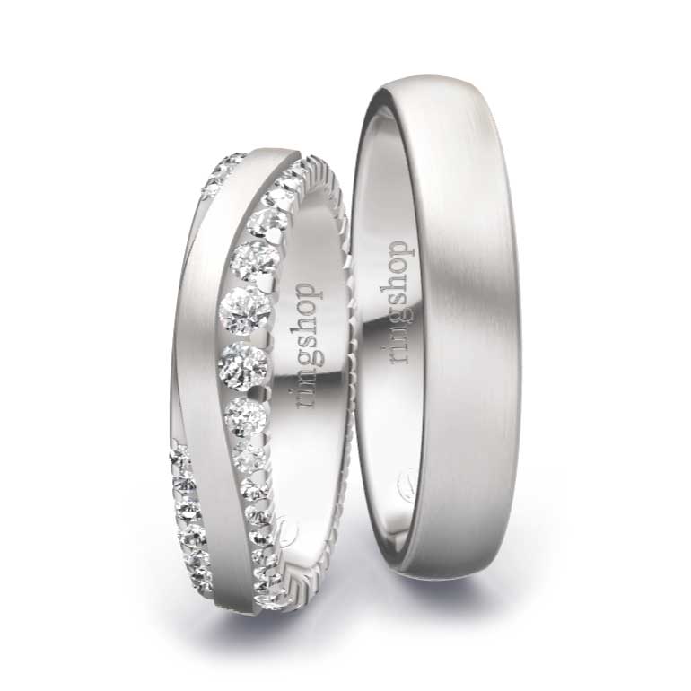 100 % des Ringes sind mit Brillanten ausgefasst – man spracht in diesem Fall von “voll ausgefasst”