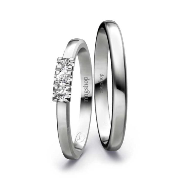Im Ring sind drei Brillanten gefasst