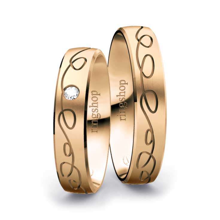 Rotgold: Es handelt sich um eine Legierung aus Feingold, Kupfer und Silber mit Goldanteilen zwischen 333/- und 750/-. Der etwas größere Kupferanteil sorgt für die namensgebende „rote“ Färbung und Härte des Materials. Der elegante und gleichermaßen zeitlose Farbton ist Kupfer ähnlich.