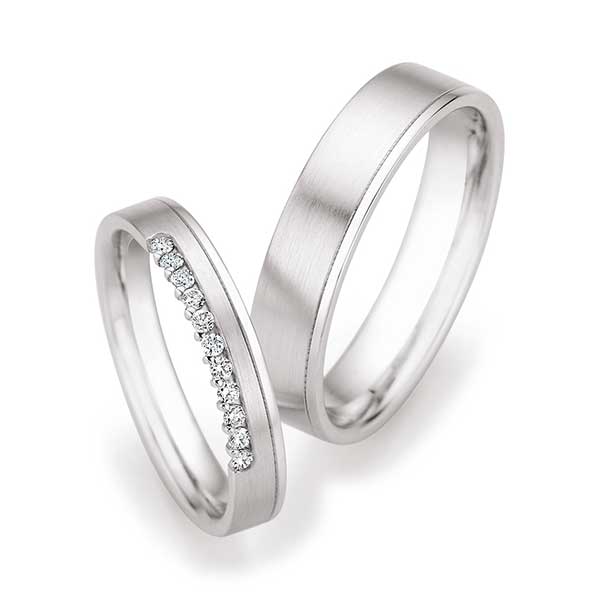 Silber: Seit Jahrhunderten sehr beliebte Materialien zur Herstellung von Schmuck sind Silberlegierungen. Silber überzeugt durch sein strahlend helles Erscheinungsbild und ist aufgrund des günstigeren Preises sehr gefragt – speziell bei Verlobungsringen.
