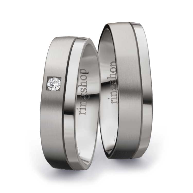 Palladium: Das mit Platin verwandte Metall Palladium erhält mit einem Feingehalt von 950/- eine besonders helle und strahlende Oberfläche. Mit einem Feingehalt von 500/- ist es deutlich dunkler wie etwa Graugold.