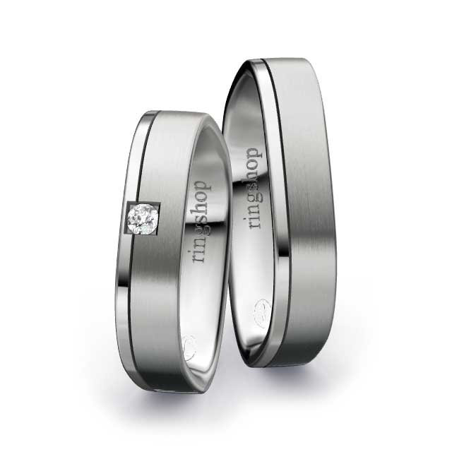 Palladium: Das mit Platin verwandte Metall Palladium erhält mit einem Feingehalt von 950/- eine besonders helle und strahlende Oberfläche. Mit einem Feingehalt von 500/- ist es deutlich dunkler wie etwa Graugold.