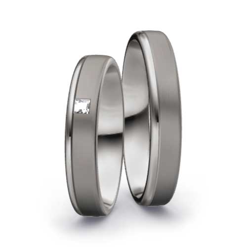 Palladium: Das mit Platin verwandte Metall Palladium erhält mit einem Feingehalt von 950/- eine besonders helle und strahlende Oberfläche. Mit einem Feingehalt von 500/- ist es deutlich dunkler wie etwa Graugold.