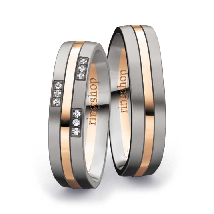Palladium: Das mit Platin verwandte Metall Palladium erhält mit einem Feingehalt von 950/- eine besonders helle und strahlende Oberfläche. Mit einem Feingehalt von 500/- ist es deutlich dunkler wie etwa Graugold.