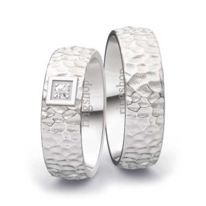 Silber: Seit Jahrhunderten sehr beliebte Materialien zur Herstellung von Schmuck sind Silberlegierungen. Silber überzeugt durch sein strahlend helles Erscheinungsbild und ist aufgrund des günstigeren Preises sehr gefragt – speziell bei Verlobungsringen.