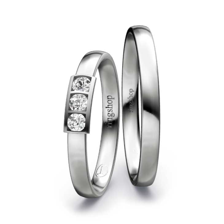 Im Ring sind drei Brillanten gefasst