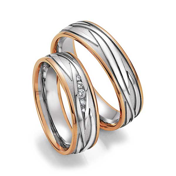 Rotgold: Es handelt sich um eine Legierung aus Feingold, Kupfer und Silber mit Goldanteilen zwischen 333/- und 750/-. Der etwas größere Kupferanteil sorgt für die namensgebende „rote“ Färbung und Härte des Materials. Der elegante und gleichermaßen zeitlose Farbton ist Kupfer ähnlich.
