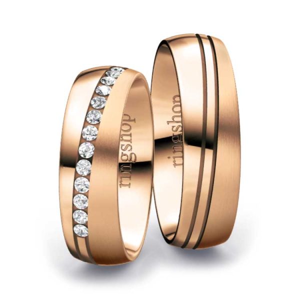 Rotgold: Es handelt sich um eine Legierung aus Feingold, Kupfer und Silber mit Goldanteilen zwischen 333/- und 750/-. Der etwas größere Kupferanteil sorgt für die namensgebende „rote“ Färbung und Härte des Materials. Der elegante und gleichermaßen zeitlose Farbton ist Kupfer ähnlich.