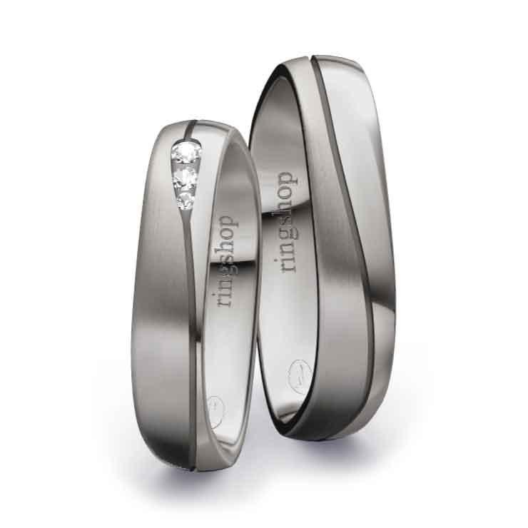 Palladium: Das mit Platin verwandte Metall Palladium erhält mit einem Feingehalt von 950/- eine besonders helle und strahlende Oberfläche. Mit einem Feingehalt von 500/- ist es deutlich dunkler wie etwa Graugold.