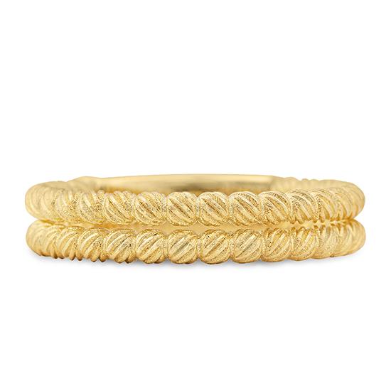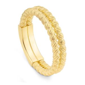 Gelbgold: Die «klassische», elegante und zeitlose Goldfarbe mit Feingehalt 333/-, 375/-, 585/- und 750/- ist eine dem Feingold sehr ähnelnde gelbe Goldlegierung, die vorwiegend mit Silber und Kupfer legiert ist. Mit einem Feingehalt von 585/- (14 Karat) und 750/- (18 Karat) spricht man von «Echtschmuck».