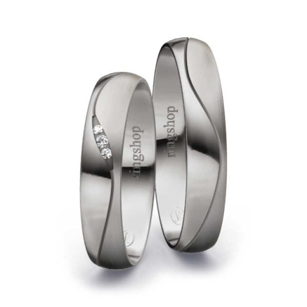 Palladium: Das mit Platin verwandte Metall Palladium erhält mit einem Feingehalt von 950/- eine besonders helle und strahlende Oberfläche. Mit einem Feingehalt von 500/- ist es deutlich dunkler wie etwa Graugold.