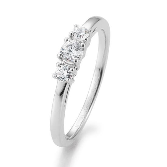 Im Ring sind drei Brillanten gefasst