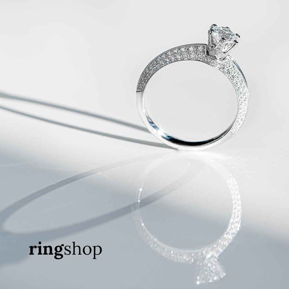 100 % des Ringes sind mit Brillanten ausgefasst – man spracht in diesem Fall von «voll ausgefasst»