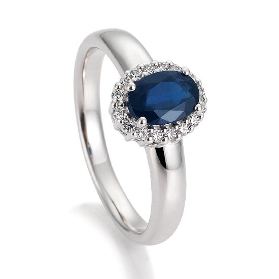 - Halo-Ringe, bei denen der Farbstein von einem Kranz funkelnder Diamanten umgeben ist